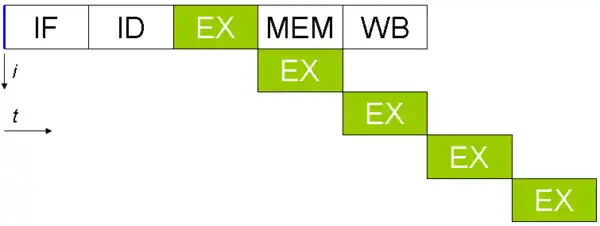 Each EX in this image shows a separate execution core (typically an ALU) operating in parallel with one another.