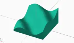The builtin module surface() is able to create a 3D object that represents the heightmap of data in a matrix of numbers. However, the data matrix for surface() should be stored in an external text file. The following module does the exact heightmap of surface() for a data set generated by the user code.