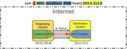 In regular port forwarding, connections to a local port are forwarded to a port on a remote machine. This is a way of securing an insecure protocol or of making a remote service appear as local. Here we forwarded VNC in two steps. First make the tunnel: