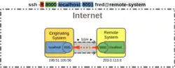 A common use-case for reverse tunneling is when you have to access a system or service which is behind either NAT or a firewall or both and thus incoming SSH connections are blocked, but you have direct access to a second system outside the firewall which can accept incoming connections. In such cases it is easy to make a reverse tunnel from the internal system behind the firewall to the second system on the outside. Once the SSH connection has made the reverse tunnel, to connect to the internal system from outside, other systems can connect to the forwarded port on the remote system. The remote system on the outside then acts as a relay server to forward connections to the initiating system on the inside.
