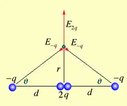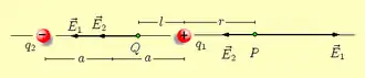 Figure 2 - the layout for calculating the electric field along the line through the dipole charges.