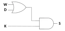or it can be summarised as S=K.(W+D) Hence the truth table for Boolean equation contains eight possible scenarios are as followed, where 0 denotes FALSE and 1 denotes TRUE