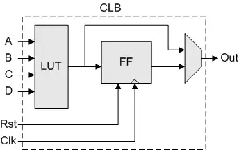 The typical FPGA logic block consists of a 4-input lookup table (LUT), and a flip-flop.
