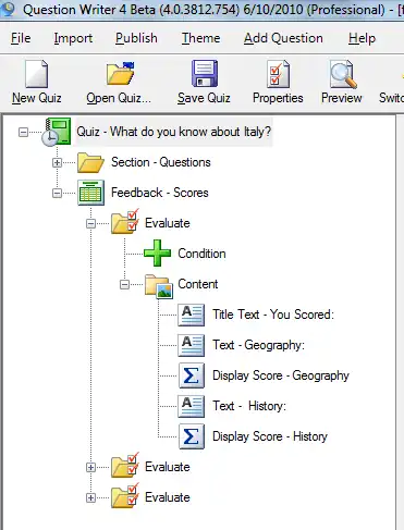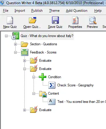 The Condition can contain And, Or and Not nodes, so evaluations can take place that depend on multiple scores, or one thing being true and another being false, or any one of a number of things being true. The feedback can also redirect the user to another part of the quiz - maybe to bounce the user back into the question if he answered incorrectly, or to skip a question based on a response given by the user. You can find out more about this in Skipping and Branching.