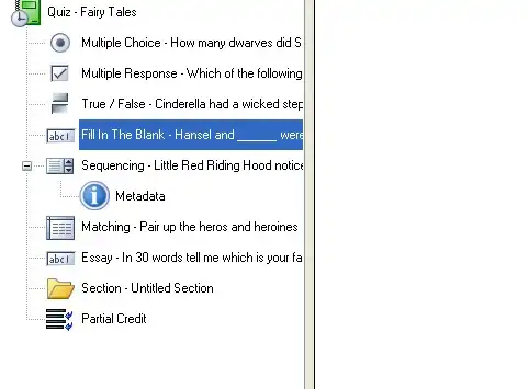 The question will then appear with the blue circle information icon below it in the quiz tree.