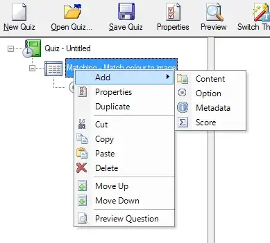 Here is a step by step description of how to add images to a matching question. First add your question, it must be either a Partial Credit, Matching, Sequencing or Plugin question types but for this example we are using a matching question. In the question properties you can type in the Question, eg “Match the colours to the images?” You do not need to add any text into the choices or matches fields. The next step is to add options to the Question. With your mouse over the question, right click and select Add and then, from the drop down list that appears, select Option ![]() You need to add an option for each possible answer option you want to give, ie the choice and it’s respective match. After you have added your first option you can add your image to that option. So with your mouse on the option, right click and select Add and then Image ![]() You can then add the option to match with that image, eg a text option, though it could be another image or a sound. ![]() When you have added all your choices and matches you can preview your question. ![]()