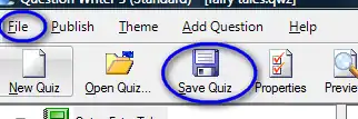 As with all Windows software to save your file simply select File and Save (or Save As if you wish to change the name) from the menu bar or click on the Save Quiz button on the tool bar. All quizzes are saved with a .qwz extension.