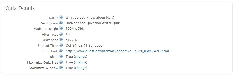 To access this first click on Quizzes in the main menu and then select a quiz. A screen will open showing all the options for that quiz including this section: