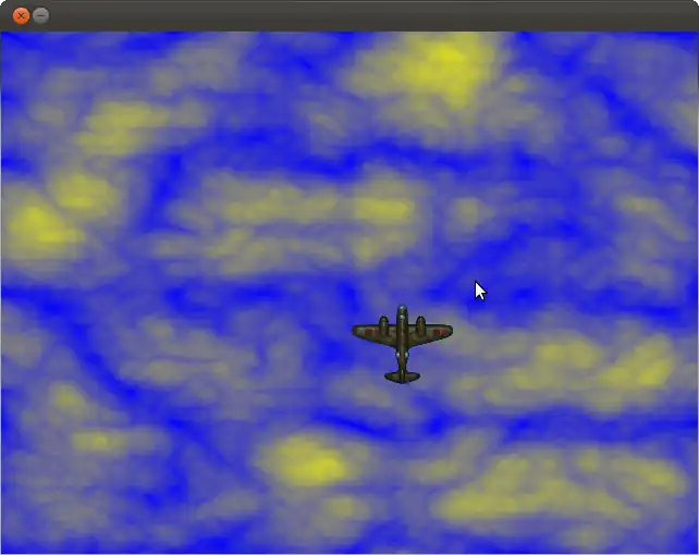 Note the order in which the background and the plane bitmap is blitted. This order allows the plane to be displayed on top of the cloud bitmap we showed earlier.