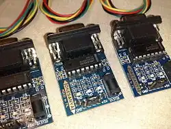 No-name data cables have become rather cheap (as opposite to original phone-brand data cables). The cheap cables with their voltage converters can be used as an alternative to home-made MAX232-based circuitry. The advantage is that the cables occupy much less space (the converter is usually inside the RS232 plug). Such a cable also saves the effort to solder a circuitry board. Another advantage, which can also be a disadvantage of such a data cable is that they usually take their power from the RS232 connector. This saves an external power supply, but can also cause problems, because the RS232 interface is not designed to power some logic and the DTE might not provide enough power[2]. Another disadvantage is that many of these cables just support RX and TX (one receiver, one driver), and not two drivers/receivers as the MAX232. So there is no hardware handshake possible. Finally, when using such a cable it should be made sure that they convert to the desired voltage (3.3 V or 5 V).