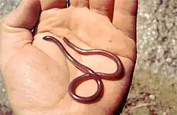 Typhlops vermicularis, the European blind snake or European worm snake, is a species of snake in the genus Typhlops, first described by Merrem in 1820. Despite its common name, the range of the European blind snake is from the Balkan Peninsula, the Aegean Islands, and Cyprus to Afghanistan.[1] The common names refer to how it is the only blindsnake of the genus Typhlops naturally found in Europe.