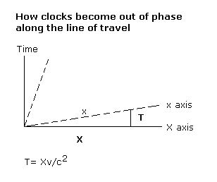The last consequence is that clocks will appear to be out of phase with each other along the length of a moving object. This means that if one observer sets up a line of clocks that are all synchronised so they all read the same time, then another observer who is moving along the line at high speed will see the clocks all reading different times. In other words observers who are moving relative to each other see different events as simultaneous. This effect is known as Relativistic Phase or the Relativity of Simultaneity. Relativistic phase is often overlooked by students of Special Relativity, but if it is understood then phenomena such as the twin paradox are easier to understand.