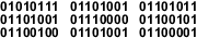 Computers use binary, or base 2, to store data. The binary system has only two possible digits, the 0 and the 1. To understand binary, we will start with something everyone is familiar with: decimal, or base 10. Base 10 has ten digits, from 0 through 9. Numbers greater than 9 are represented by altering the position of digits within the number. The number 10 has a one in the tens place and a zero in the ones place, and is understood to be (1*10) + (0*1). Similarly, 100 contains a one in the hundreds place, and is the same as (1*100) + (0*10) + (0*1). Now for a more complex number: 3,687. It's the same as (3*1000) + (6*100) + (8*10) + (7*1). 3,687 is also the same as (3*10^3) + (6*10^2) + (8*10^1) + (7*10^0). The carat symbol represents an exponent. There's a pattern—with the increasing digits, the number is multiplied by an increasing power of the base (in this case, 10). The first digit takes 10^0, the second 10^1, and so on. How about binary? How do you represent a number with two digits? The number one, of course, is one, but the number 10 is two, 100 is eight, and so on. Since computer scientists often mix number systems, the prefix 0b is placed in front of a binary number. 3687 is 0b111001100111 in binary, which is the same as (1*2^11) + (1*2^10) + (1*2^9) + (0*2^8) + (0*2^7) + (1*2^6) + (1*2^5) + (0*2^4) + (0*2^3) + (1*2^2) + (1*2^1) + (1*2^0). So what are bits and bytes? The word bit is a shortening of the term binary digit . One bit of memory holds a single binary digit. The byte is a grouping of eight bits. The eight-bit byte can conveniently store a single character. There are 256 possible combinations of 8 bits.
