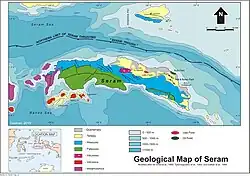 From the inner (Banda Sea) side to the outer (Foreland Basin) side the following belts has been distinguished in the Outer Banda Arc geology by de Smet (1999, Figure 1): 1. A forearc belt, which is in general blocky and narrow, 2. A collision-related metamorphic belt, composed of low to high grade metamorphosed rocks, 3. A thrust and fold belt dominated by Permo-Triassic and Jurassic sediments of Australian continental margin origin. 4. A thrust and fold belt dominated by Late Mesozoic and Tertiary deep water sediments 5. A belt of uplifted Late Neogene basins.