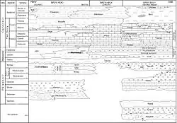 The Modio Formation is interpreted as a transgressive sequence deposited from tidal to marine shelf. The upper contact with Aiduna Formation is not well exposed and is interpreted to be disconformable (UFFORD, 1996).