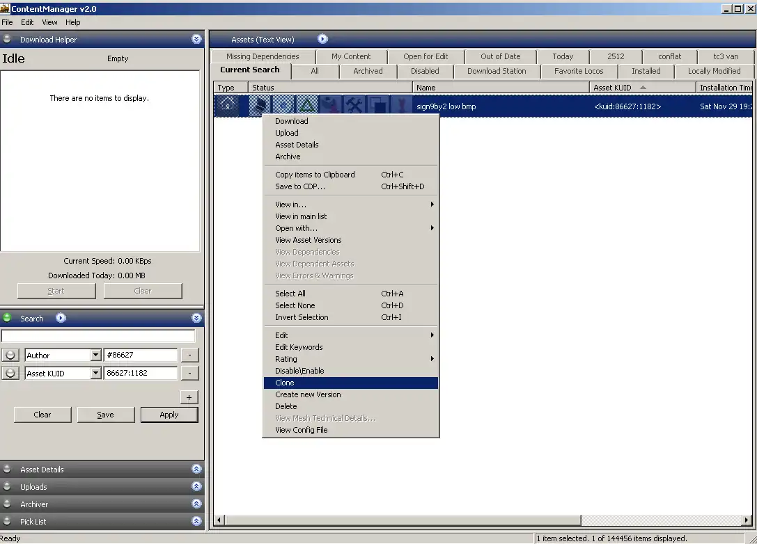 A simple search in TS2009's CM 2.0 for a specific asset.