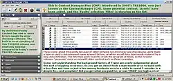 Content Manager Plus was a new module added to Trainz with the November 2005 release of TRS2006, with which users could install new modeling assets, or export a route to share. While CM or ContentManager.exe was also a stand alone EXE file utility in TRS2004 — the 2004 facility was primitive though an improvement on the handful of exe modules, each doing separate maintenance and upkeep functions in Trainz 1.0 through Trainz UTC, combining several functions in that handful of executables. While still a separate module, TRS2004's ContentManager was further evolved, but still primarily only a local database management and access tool and there were separate programs for managing the FTP transactions of uploading and downloading cdp file assets to the newly created cloud service, Auran's Trainz Download Station.