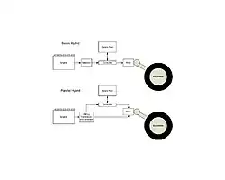 A hybrid electric bus (HEB) combines a conventional model of the internal combustion engine (ICE) with an electric system, used for propulsion, regenerative energy, or as an independent power source, depending on the alignment of the power-train system in the HEB. Series, parallel, and blended hybrids are the generally how the power sources are sub-categorized among HEBs; a series has no mechanical connection between the engine and drive axle. Instead, the engine sends power to the generator, which then powers an electric motor. Conversely, the parallel hybrid’s engine powers the generator, which can either charge directly drive the vehicle’s axle or charge the battery pack. The self-descriptive blended HEB is a combination of the two power alignment schemes, as displayed in Diagram A