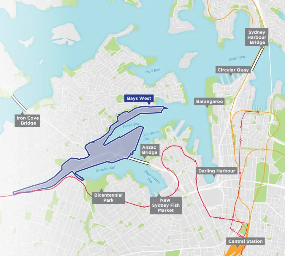 - ↑ a b c d e f g h i j k NSW Department of Planning and Environment (2022). "Bays West Stage 1 Draft Master Plan and Urban Design Framework" (PDF). Retrieved 2023-04-23.
