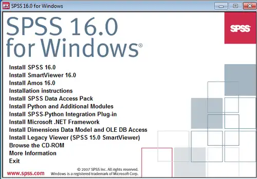 SPSS is a software package designed for statistical analysis. This chapter will illustrate how to install SPSS 16.0 on Windows 7.