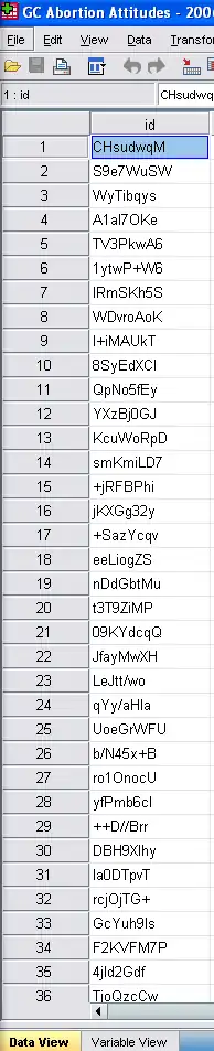 The columns represent variables. Each column contains all individual case data on that particular variable. The "id" column: