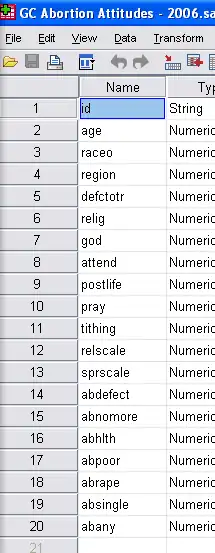 In Variable View, the rows correspond to variables, not cases. This view does not show raw data but rather metadata, information/settings/characteristics of the variables included in the data set. The metadata of two variables: