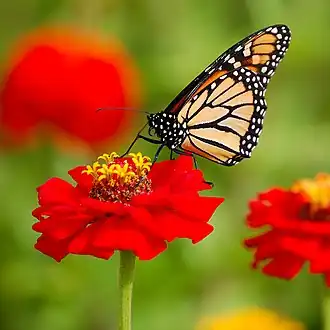 Monarch butterfly feeding on nectar from a flower.