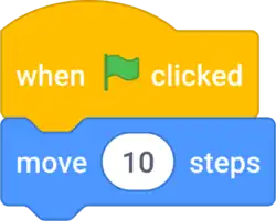 clicked" block. - From the Motion category, select and drag the "move 10 steps" block.