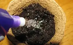 Step 3Dig a small hole, either with your finger or with one of your tools. If you are going to use a tool, the transplanter works well for digging holes. Measure the hole so that it is 1/4" from the top of the soil.