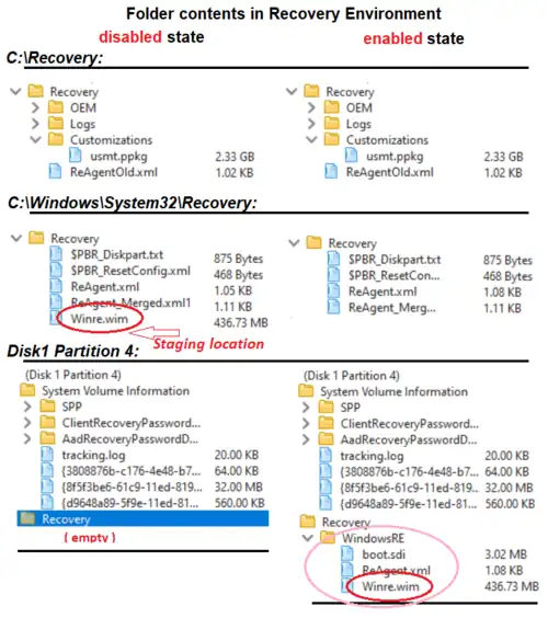 - When the Recovery Environment is disabled, the Winre.wim file is moved back to its staging location in the \Windows\System32\Recovery folder. (See Figure D). It is then moved back to its working location when it is enabled.
