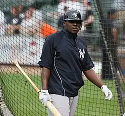 On January 6, 2009, Berroa agreed to a minor league deal worth $900,000 with the New York Yankees.[46] He was brought in to compete for a utility infielder role with Cody Ransom expected to played third base in place of the injured Alex Rodriguez.[47] Despite hitting .371 in 29 games,[48] Berroa did not make the opening day roster and was assigned to minor league camp on the last day of spring training.[49] He was added to the major league roster on April 25 following following an injury to Ransom, leaving Berroa and Ramiro Pena to fill in at third base.[50][51] Berroa got his first hit with the Yankees that day.[52] After hitting .136 in 21 games, he was designated for assignment on June 24 once Ransom returned from the 60-day disabled list.[53] He was granted his release on July 7.[54]