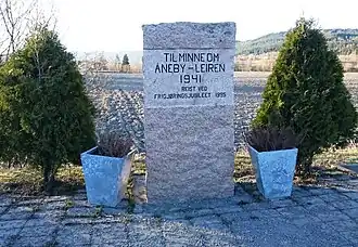 Ånebyleiren (Aneby detention camp) was the first German prison camp in the Oslo area, and the second in Norway after Ulven near Bergen. Six barracks were built on stilts from the autumn of 1940 to the spring of 1941.[1] The prison camp was located in a field near Fossen farm, north of the current gas station in Hakadal. The Germans called their camps in Norway "Häftlingslager".