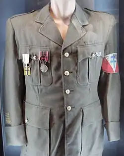 By November 1942, Coulaudon was head of Combat in Puy-de-Dôme.[4] In April 1943, he went into hiding and created the Auvergne 1st Corps Franc, whose command post was situated in the hamlet of Lespinasse, in the commune of Pulvérières.[5] He led this group in numerous acts of sabotage (including Ancizes steel mill, a German transmitter at Royat, a train carrying German troops at Martres de Veyre) and rescued numerous Resistance fighters. His acts also enabled the recovery from Vichyist stores of over 200,000 litres of petrol, 100 tonnes of food and clothing (from the Chantiers de la jeunesse française youth organisation at Chatelguyon), and 150 vehicles of different kinds,[1] among which was the Hotchkiss belonging to Joseph La Porte du Theil, national chief of Chantiers de la jeunesse française.[6] While looking for the command centre of the Mouvements unis de la Résistance in Puy-de-Dôme on 11 December 1943, the Sicherheitsdienst launched an offensive at Saint Maurice. Coulaudon, Antoine Llorca ("Laurent") and the main local Resistance members fled, but the next day the Sicherheitsdienst found a briefcase containing important documents, which it had not been possible to dispose of. The next day, at Billom, Gaspard and his comrades ("Laurent", Robert "Prince" Huguet, Max "Bénevol" Menut, Camille "Buron" Leclanché), narrowly evaded a search party led by Hugo Geissler, comprising 2,000 soldiers from the 66th Army Reserve Corps. In the following days, Resistance munitions and supplies were seized.[7]