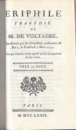 - ^ Robert Niklaus: Ériphyle, in: Dictionnaire Voltaire, Hachette Livre, 1994, p.72