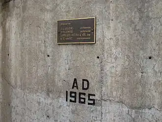 In June and July 1966, the bodies were exhumed from the cathedral crypt. While the identification of the bishops' graves was easy, the other bodies were more difficult to identify. In the end, only five out of the 45 bodies buried since 1850 could be identified.[5] The bodies were moved and buried in the late summer of 1966. The bodies of the four bishops were placed in the funerary monument and the other remains in the surrounding area. The mausoleum was inaugurated that summer by Most Rev. Georges-Léon Pelletier.[6]