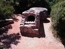 As well as accommodating a youth hostel, old part of the Royal Fort, the Roman and medieval cisterns, houses an archaeology museum[5] exploring land and sea[12] (Museum Reference No: 0602902; Identification Number: M0873[13]) This official French museum was called the Museum of the Sea (French: "Musée de la Mer"),[14] but changed its name[15] from 2020 onwards to the Iron Mask and Royal Fort Museum (French: "Musée du Masque de fer et du Fort Royal")[16] The museum is laid out around the former prison with the cell in which the Man in the Iron Mask was imprisoned, the Roman cisterns of the old castle and, upstairs, its collection of objects from Roman and Saracen shipwrecks, from the islands of Tradelière (French: Tradelière) and Batéguier,[5] as well as Roman frescoes.[17] The museum also presents explicative scale models and works of contemporary art.[17] The museum's temporary exhibitions take place in summer on the vast terrace overlooking the sea:[17][3]-