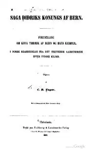 Cover of Saga Điðriks konungs af Bern (1853), edited by Carl Richard Unger.