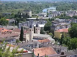 The river Neretva flows through the city and flows into the Adriatic just over the border. The town's landmark is a statue of King Tomislav. The Church of Saint Francis of Assisi is also a prominent facet of the city. The city coat of arms contains the Croatian checkerboard, the nearby tower in Počitelj, and Saint Francis of Assisi.