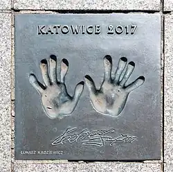 Hand prints and signature at the Avenue of Volleyball Stars, Katowice