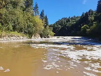 The Ōhura River at its confluence with the Whanganui River