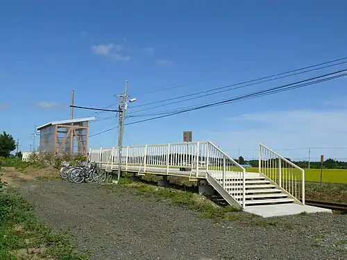 Ōmagari Station had a single side platform serving bidirectional traffic. There was a small weather shelter on the platform, but no station building. The station was surrounded by farms, with no houses or shops in the vicinity.