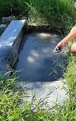 Sometimes when there is not enough iron in the mud, it does not dye well. When the happens, leaves from the sotetsu tree are put in the mud strengthening the chemical effect of the dye.[17]