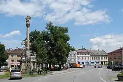 The historic centre is formed by Masarykovo Square and adjacent streets. The main landmark of the square is the town hall. It is a Neoclassical building from 1810. In the middle of the square are a Marian column from the late 17th century and a fountain with sculptures of a nymph and a centaur.[13]