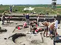 Since 1910 the site started to be researched by the archaeologist M. Roska.[5] Being among the pioneers of scientific archeology, Roska, is the first that helped to clarify the chronological and cultural classification of the various horizons captured here. The excavations of 1910–1911, 1923 and 1924 identified a substantial dwelling of Middle Bronze Age, the Mureş culture (originally called Periam-Pecica). The reports reviewed only Bronze Age strata, but also that of the Middle Copper Age.
