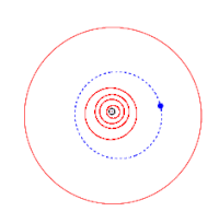 Orbits of 1989 TM1 (blue) and the inner planets and Jupiter