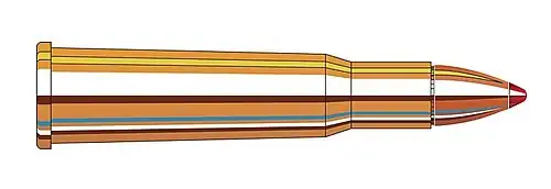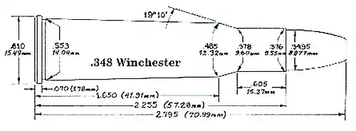The .348 Winchester / 8.8x57mmR is an American rifle cartridge. It was introduced in 1936, and developed for the Winchester Model 71 lever action rifle. The .348 was one of the most powerful rimmed rounds ever used in a lever action rifle.[3]