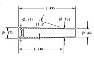 Colonel Whelen asserted the very small remaining portion of the .30-06's 17° 30′ angled shoulder was likely to cause potentially dangerous headspace difficulties.[3] The headspace issue has been widely discussed. Frankford Arsenal machine shop foreman James Howe necked down cylindrical brass available in the arsenal manufacturing process to form cartridges with a .458-inch-diameter (11.6 mm) shoulder to fit the chamber of his rifles. Experimenters had less success forming cartridges by enlarging the necks of .30-06 cartridges with .441-inch-diameter (11.2 mm) (or smaller) shoulders,[4] but could form brass from .35 Whelen cases.[5]