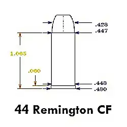 Information about the .44 Remington Centerfire cartridge is rather scarce, with even firearms cartridge encyclopedias failing to mention it. Some sources claim that the cartridge was very close in dimensions and ballistics to the contemporary .44 Colt, to the point of the two being interchangeable,[3] but others dispute this[4] (see below for more information on the dimensions of the two cartridges). The .44 Remington Centerfire may also be confused with the .44-40 Winchester, due to the former habit of some US firearms companies of producing identical copies of their rivals' proprietary cartridges under their own designations.