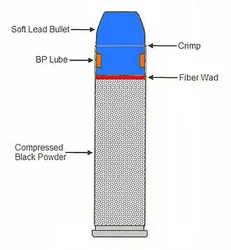 The .45 BPM can hold up to 60 grains of black powder.[2] A 60 grain cartridge configuration may be desirable to use as a novelty rifle cartridge such as for a lever-action carbine.