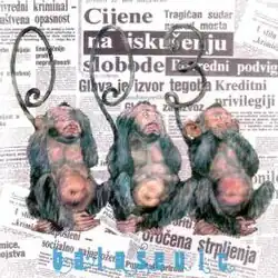 While 003 featured the same poetics as Balašević's earlier albums, a marked change was its political stance, most prominently showcased by the album's cover. On the background collage of newspaper clippings about financial crime, loans and price hikes, an illustration of three wise monkeys provided Balašević's comment on the ongoing political and social turmoil in the country.[1]
